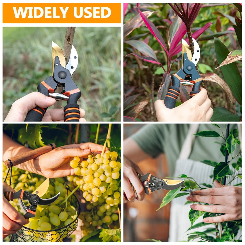 - 【Versatility Pruners For Gardening】- Suitable for pruning all kinds of plants, cutting flowers, cleaning weeds, pruning fruit trees, cutting and picking fruits and vegetables, sorting out messy branches on the roadside and so on. Basically suitable for all your yard plants .