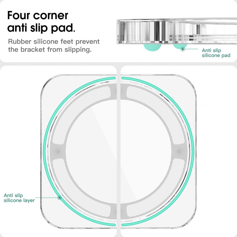 • almohadillas para orejas antideslizantes gratis: equipado con 4 almohadillas para orejas antideslizantes, la estructura estable proporciona una base segura para tu Mac Studio para evitar resbalones o temblores.