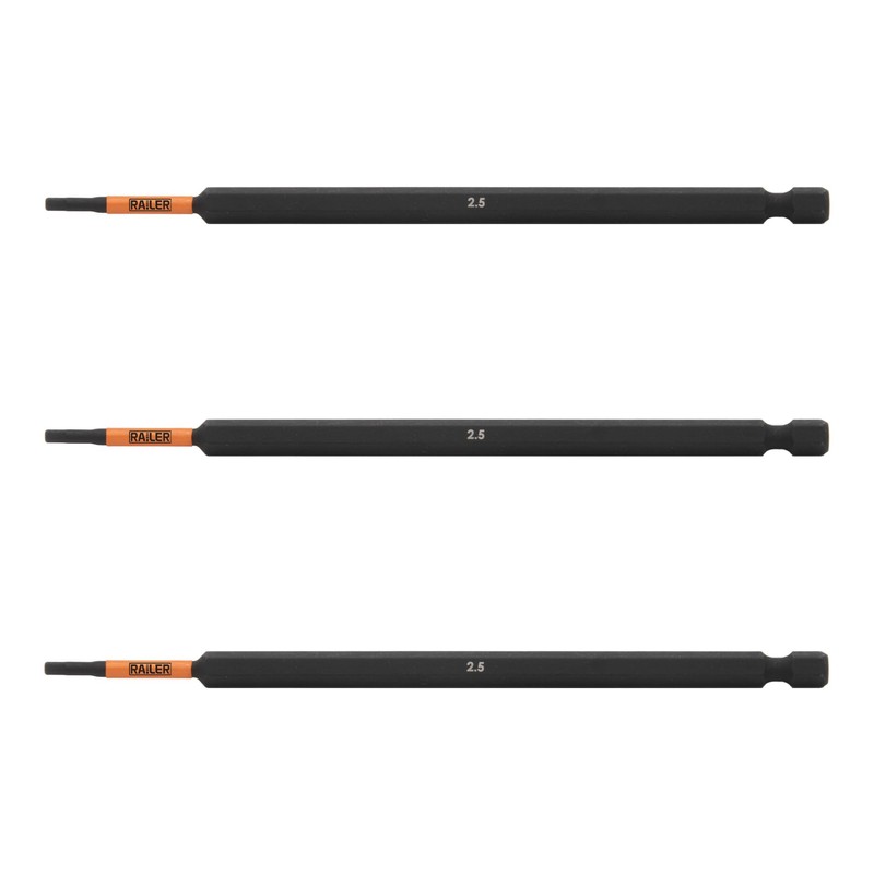 Hex 2.5mm Impact Driver Bit - Railer Allen Wrench Drill Hex Bits. 1/4" Hex Quick Release S2 Steel 6 inch 2.5mm Hex Bits. (3 Pack)