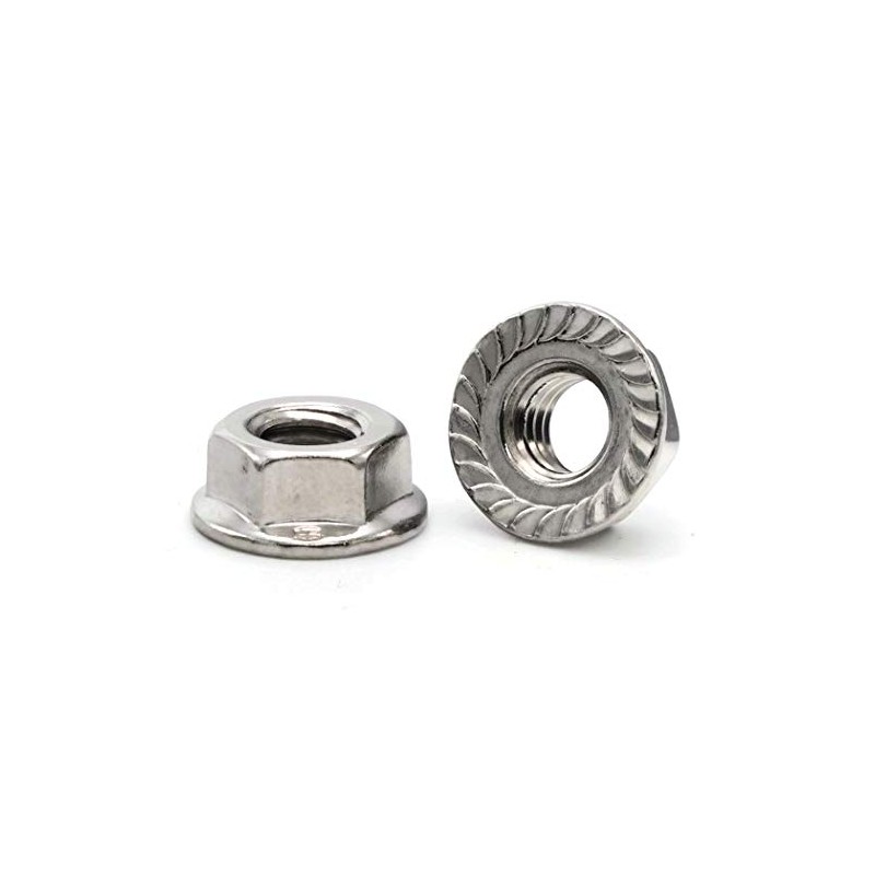 - Flange nuts are available in serrated and non-serrated, the serrations create a locking action, allowing a serrated flange nut to be substituted for a lock nut.