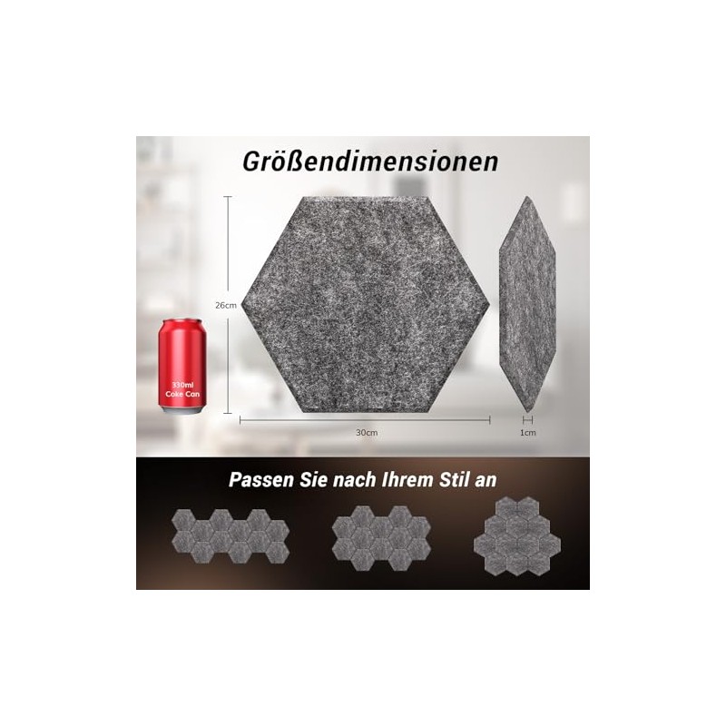 - Passen Sie Ihren Raum an: Die TONOR-Akustikplatten haben eine sechseckige Wabenform, die gleichzeitig eine stilvolle Dekoration darstellt. Investieren Sie in unsere leistungsstarken schalldichten Wandplatte und erleben Sie die perfekte Mischung aus Stil und Funktionalit√§t.