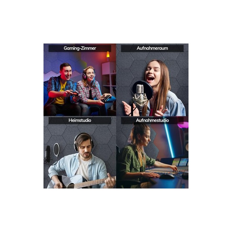 - Vielfältige Anwendungen: Die 48 Sets ultimativen Schallabsorber von TONOR eignen sich perfekt zur Unterdrückung von Hall in jedem Raum, sei es in Aufnahmestudios, Spielräumen, Heimbüros, Heimkinos oder in Wohn- und Schlafzimmern. Durch die mühelose Installation an glatten Wänden, Böden, Türen oder sogar Decken genießen Sie sofortige Geräuschunterdrückung und eine ruhige Umgebung.