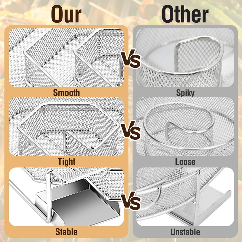 - Stainless steel material: our cold smoke generator for smoker is made of high-quality 304 stainless steel, strong and robust, and the hexagonal design strengthens stability. We have upgraded the rails and 2 handles on the surface, exquisite workmanship and smooth edges ensure that the edges do not scratch your palms. High-quality materials ensure perfect use in all climate conditions.