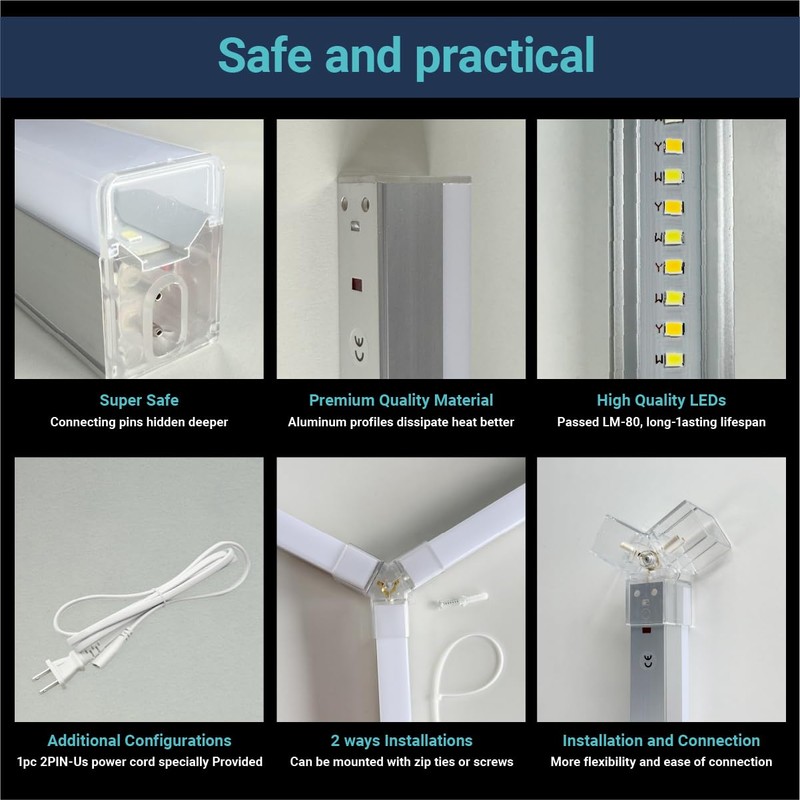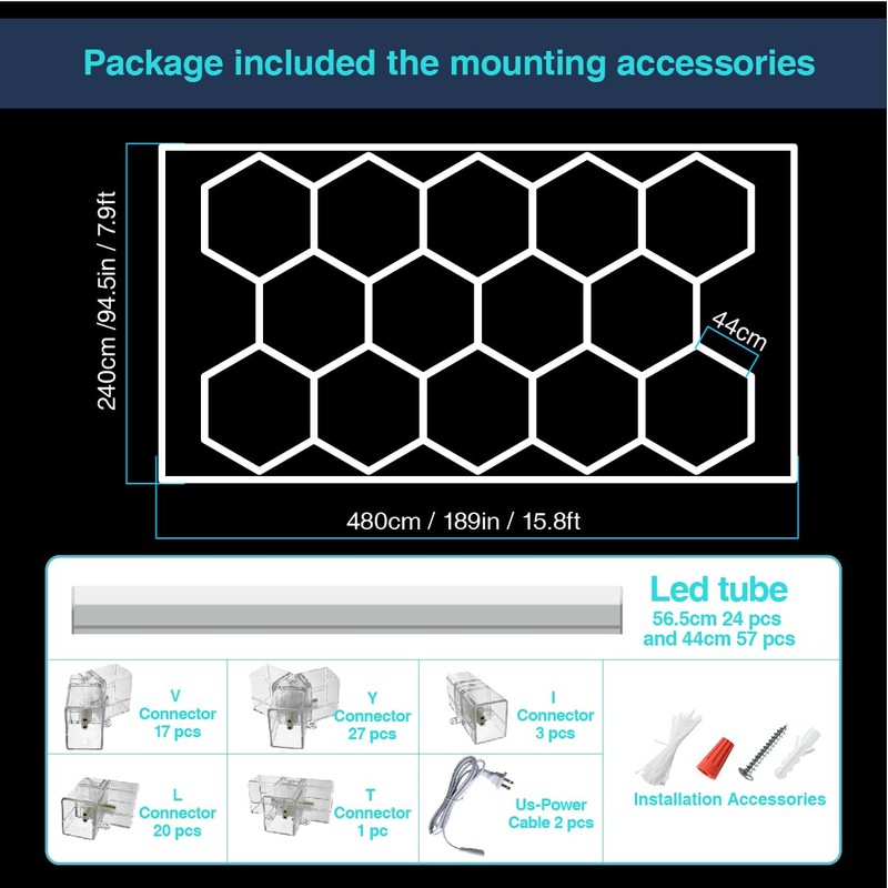 - Electrical Safety: CEZELUX hexagonal garage lights adopt an embedded connection design. The pins are Deeply buried inside the product, so they won't be touched during installation, effectively preventing the risk of electric shock. Made of sturdy and wear-resistant PC materials, buckle connectors can firmly fix the garage lights and reduce the possibility of loose connections