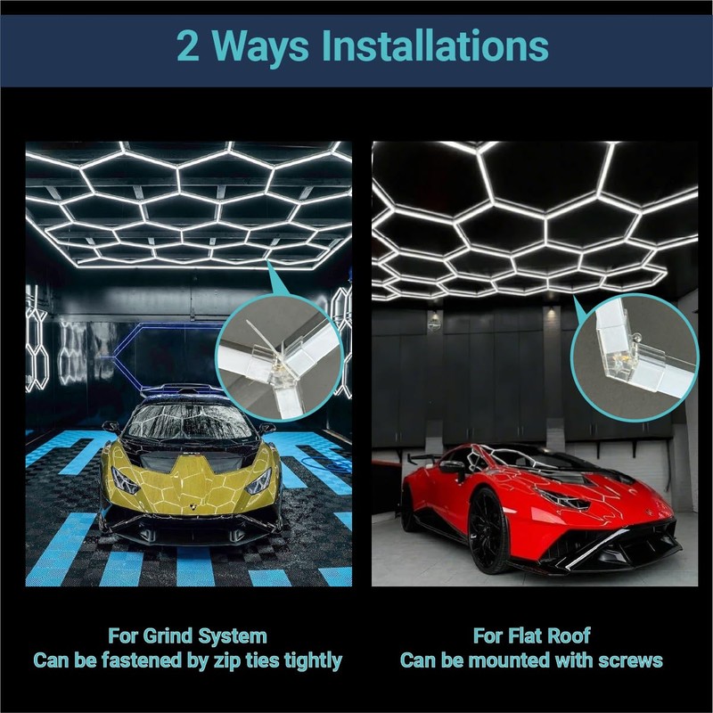 - High-end Design: With honeycomb shape and light effect design, the restoration degree of led garage grid lighting reaches more than 99%, no shadows in the illuminated area, the honeycomb lights ceiling can display the light evenly on the product, creating a stylish and atmospheric visual effect, making people feel like in the future technological space
