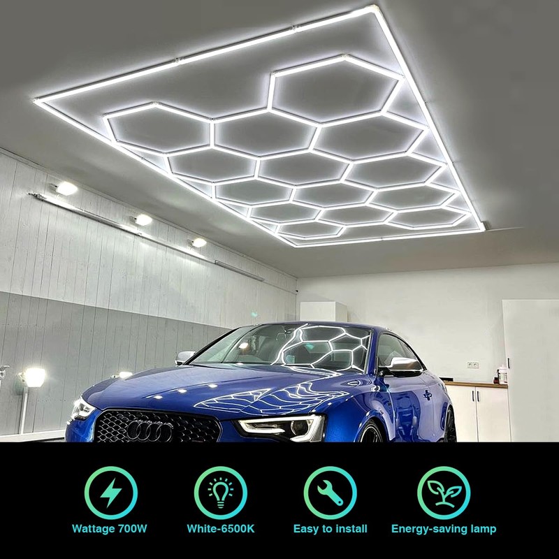 - Super Bright: With a powerful output of 77000 lumens and the color temperature of 6500 Kelvins, High Rendering Index: “CRI >85” which will make your garage or work bench looks very good and bright. These CEZELUX Hexagon Garage Lights provide exceptional brightness in your garage or workspace