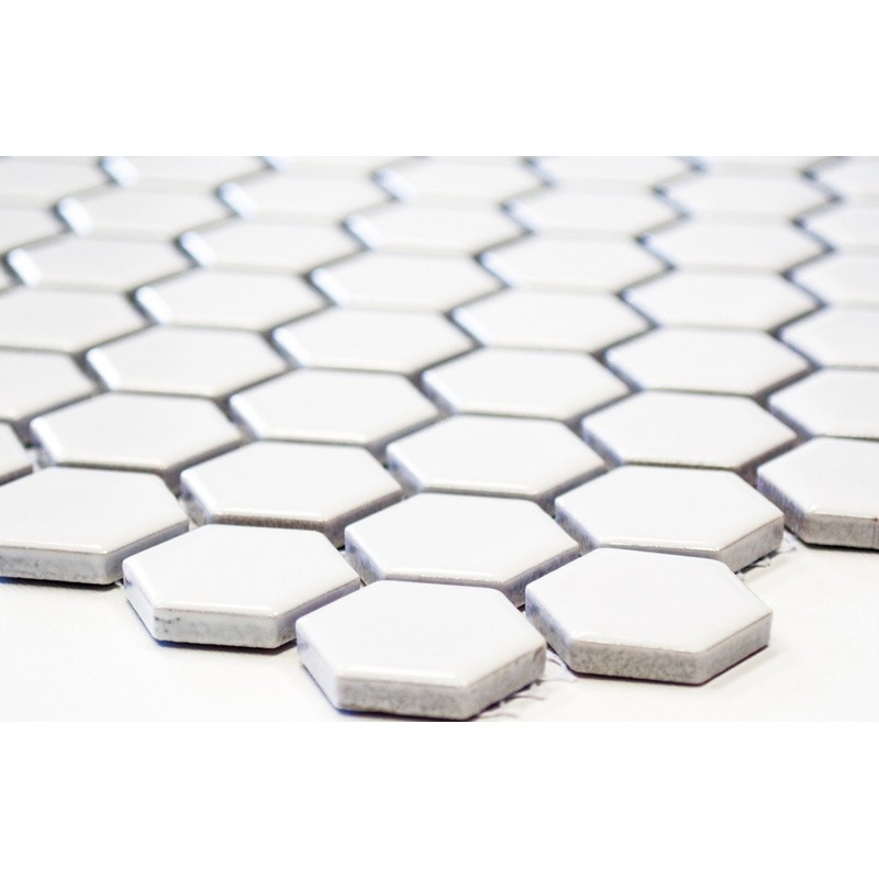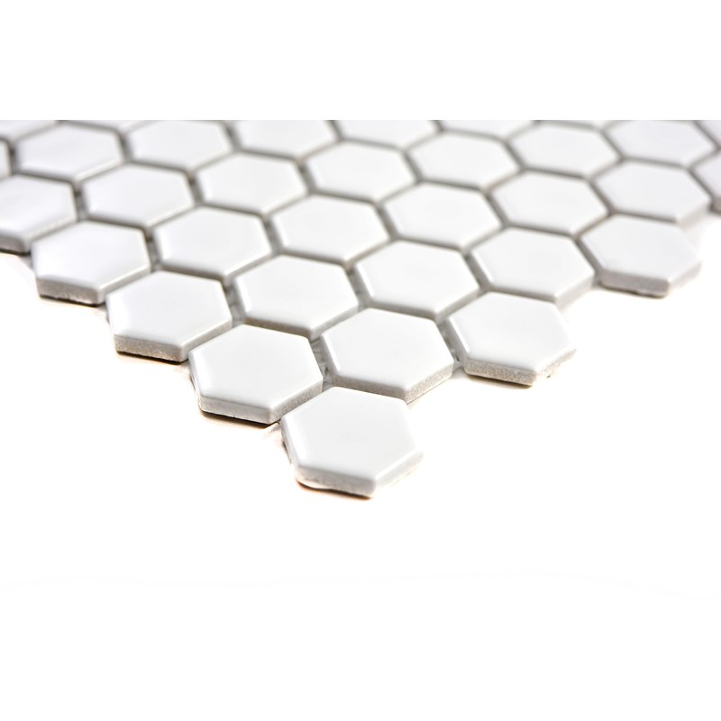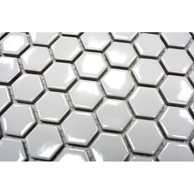 Hexagon Plain White Glossy Ceramic Mosaic Tile