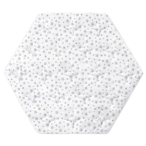 Hexagon Playpen Mat Compatible with POP 'N GO Baby Playpen, 59 Inch Hexagon Playpen Mattress Pad, Non Slip and Cushion Play Mat White with Star Print