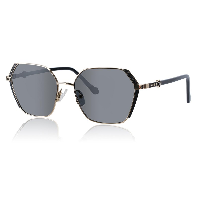 Hexagon Sunglasses for Women, UV400 Protection, Polarized, with Multi-Use Case for Car Visor (Black Frame Grey Lens)