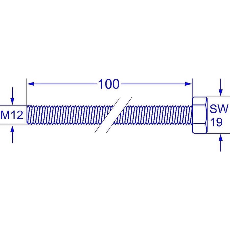 - 1 x hexagonal screw of the M12 x 100 version - DIN 931/10.9 - galvanised - incl. self-locking nut