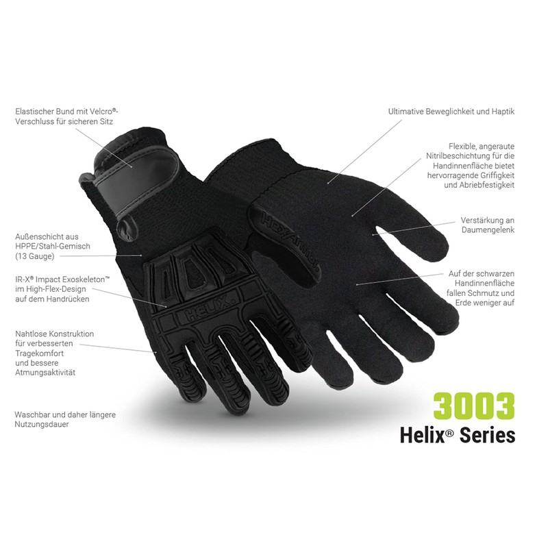 HexArmor Helix 3003 Robust Use and Access Gloves - Black - Size 11
