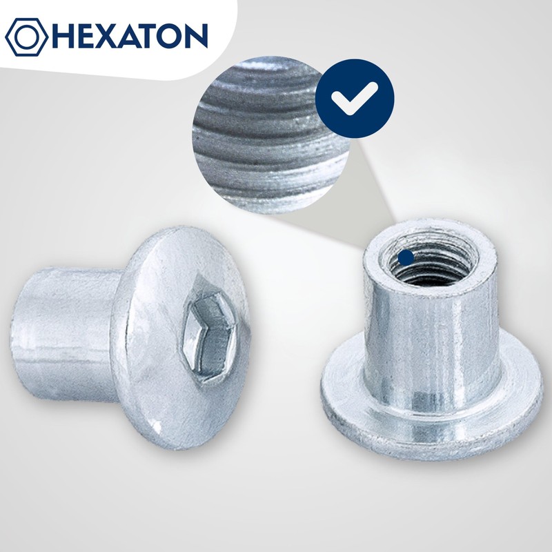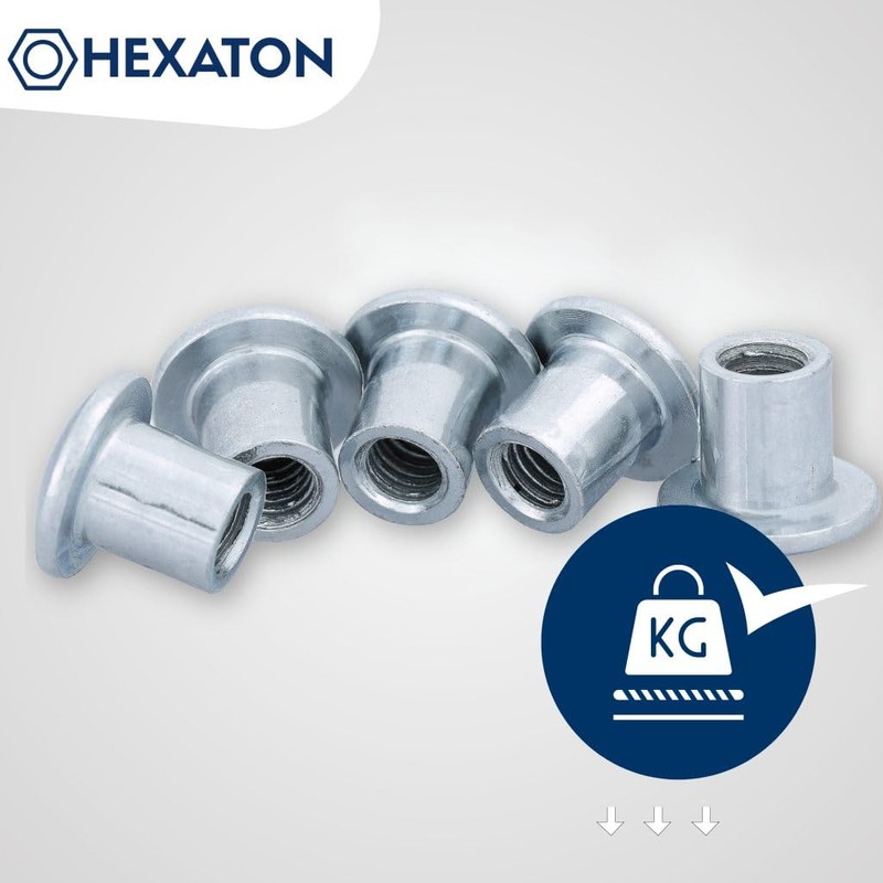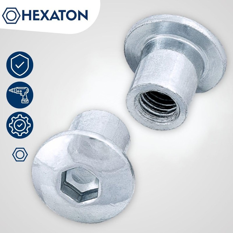 HEXATON Sleeve Nut M6 x 15 x 10mm - 50 Pieces Round Head Hex Socket Zinc Plat...