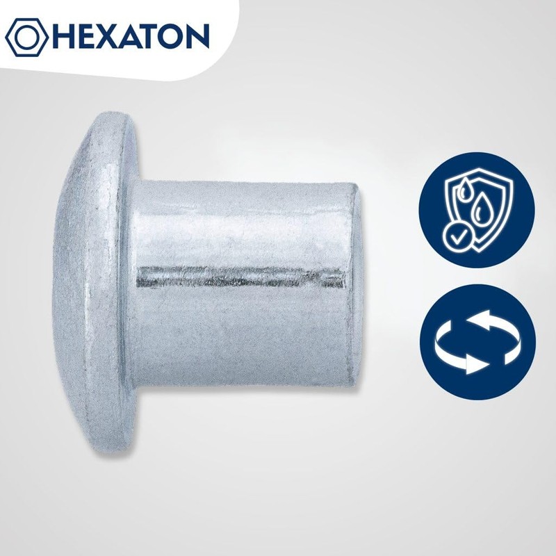 • White galvanised steel - The zinc coating reliably protects against rust and weather and ensures a long service life of the sleeve nut.