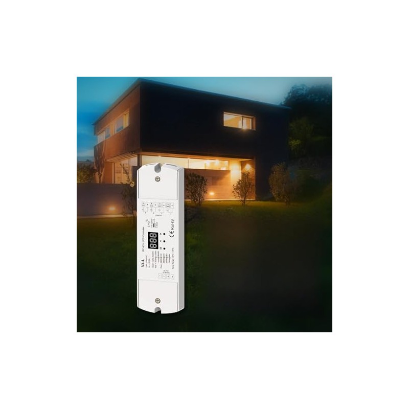 • Model: V4L 4-channel LED controller RGBW/RGB/CCT/dimming function. Technical details: Input voltage: 12-48V DC, Input current: 20.5A. Output current: 5A/CH@12-24V, 4A/CH@36-48V Output Type: Constant Voltage Maximum power: 240W@12V, 480W@24V, 576W@36V and 768W@48V, Protection functions: reverse polarity, short circuit & overheating
