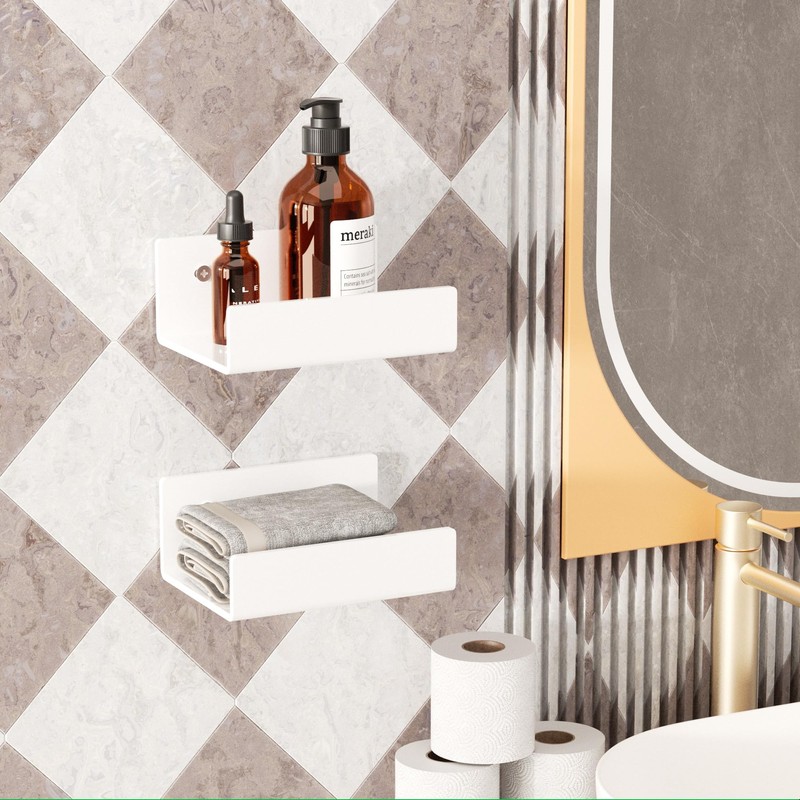 Hexsonhoma 5 Inches U Shape White Acrylic Wall Shelves 2 Pack, Acrylic Small Shelves for Books, Home Décor, Digital Clock, Speaker, Toiletries