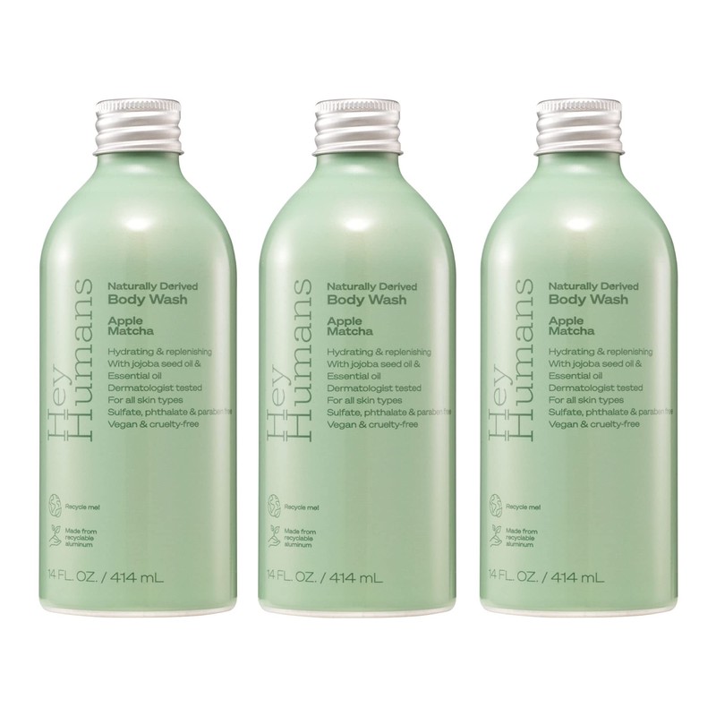 HEY HUMANS Apple Matcha Moisturizing Body Wash with Natural Ingredients & Jojoba Oil | Clean, Vegan, Sulfate Free Bath & Body Wash for Women & Men | Recyclable Bottle, 14 fl. oz. - Pack of 3