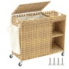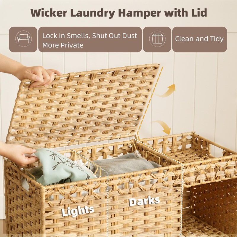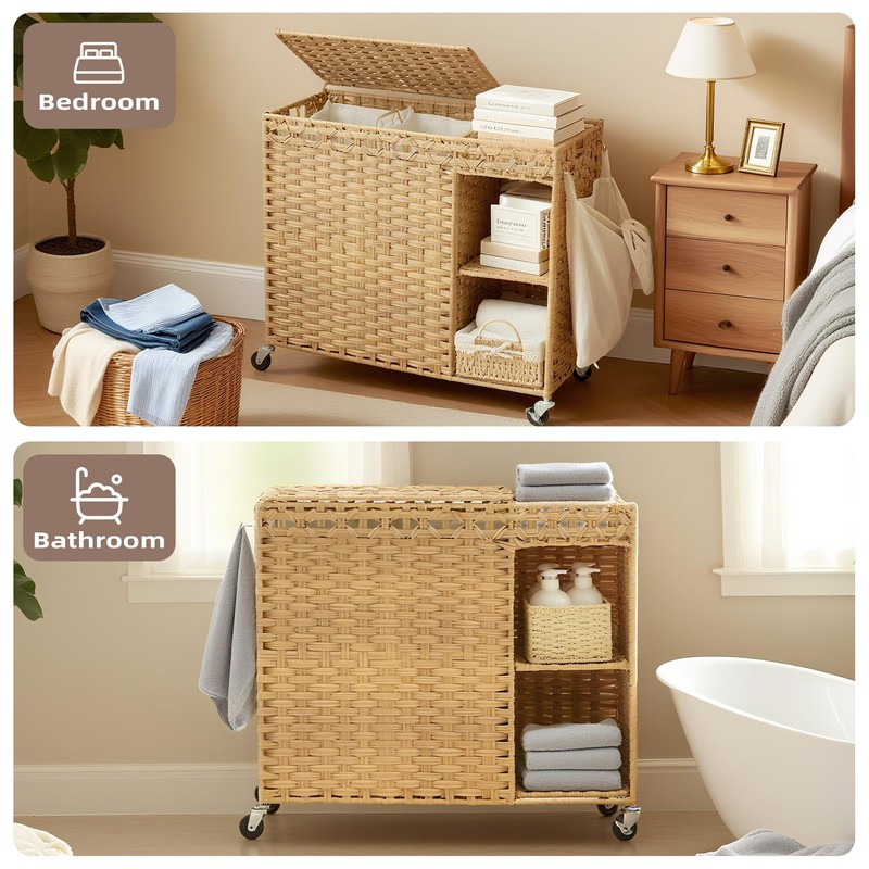 • 【Multi-Zone Wicker Laundry Basket with Shelves】 Upgraded removable shelves create dual-side organization: left for dirty clothes, right for detergents/softeners – sort smarter, not harder!