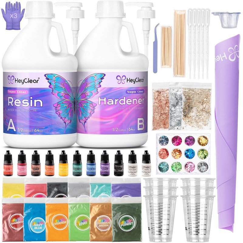 HeyClear 1 Gallon Epoxy Resin Kit Crystal Clear, Hard Upgraded 2 Part Epoxy and Hardener for Casting Coating, Countertop, Table Top, Jewelry Making, DIY Crafts Art Resina Epoxica para Manualidades