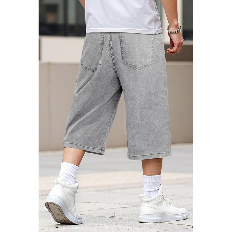 Heyfanee Mens Baggy Jorts Loose Fit Below Knee Jean Shorts Men Big and Tall Denim Shorts for Men Plus Size Light Grey 38