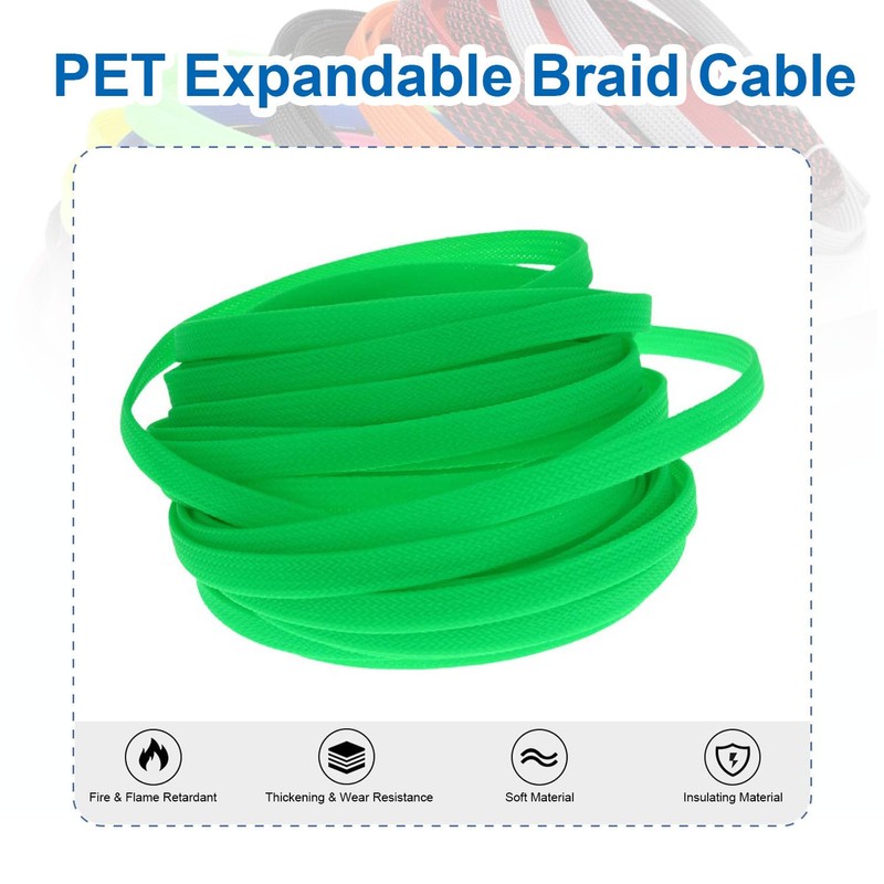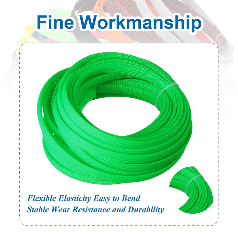 Heyiarbeit 10m/32.8ft PET Expandable Braid Cable Sleeving Flexible Wire Mesh Sleeve Fluorescent Green 8mm