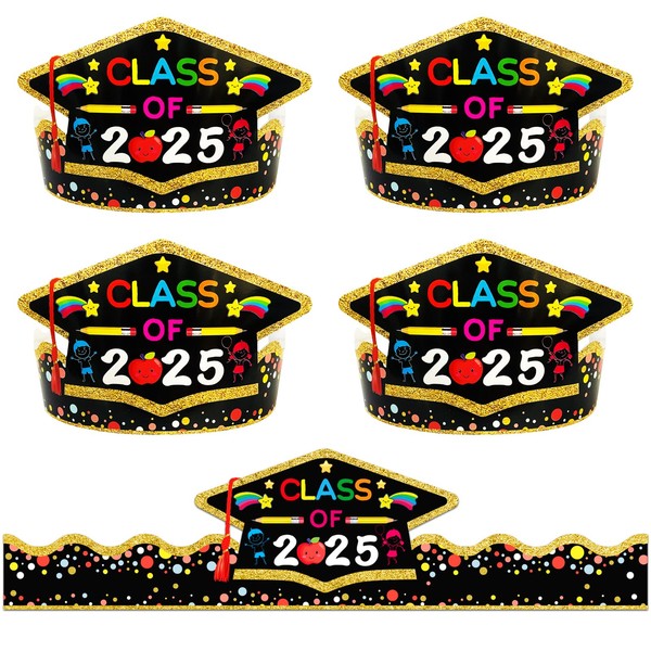 - Suitable for All Occasions: Whether for a kindergarten graduation hat ceremony or everyday fun, these black graduation paper hats are ideal for any little graduate. Printed with rich cartoon patterns, such as: pencils, apples, balloons, rainbows, and printed with very appropriate words "Class of 2025".They make the perfect gift for preschoolers celebrating this important milestone.