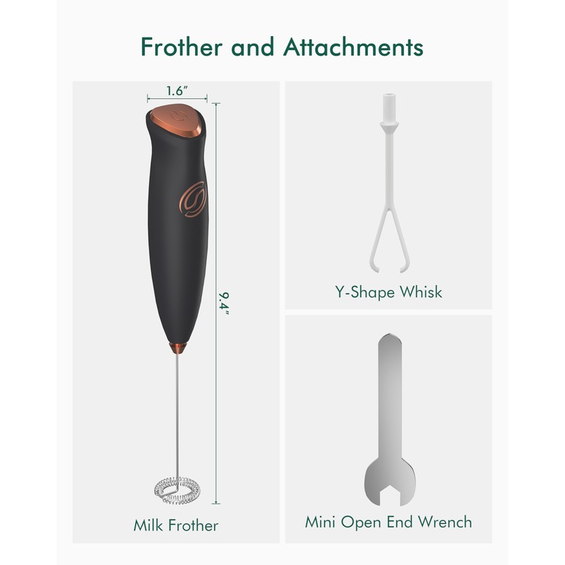 Heylotie Milk Frother Wand Coffee Frother Handheld Drink Mixer Handheld with 2 Whisks Electric Whisk Stirrers Electric Milk Frother for Coffee Mixer Wand Milk Foamer-Black/Copper