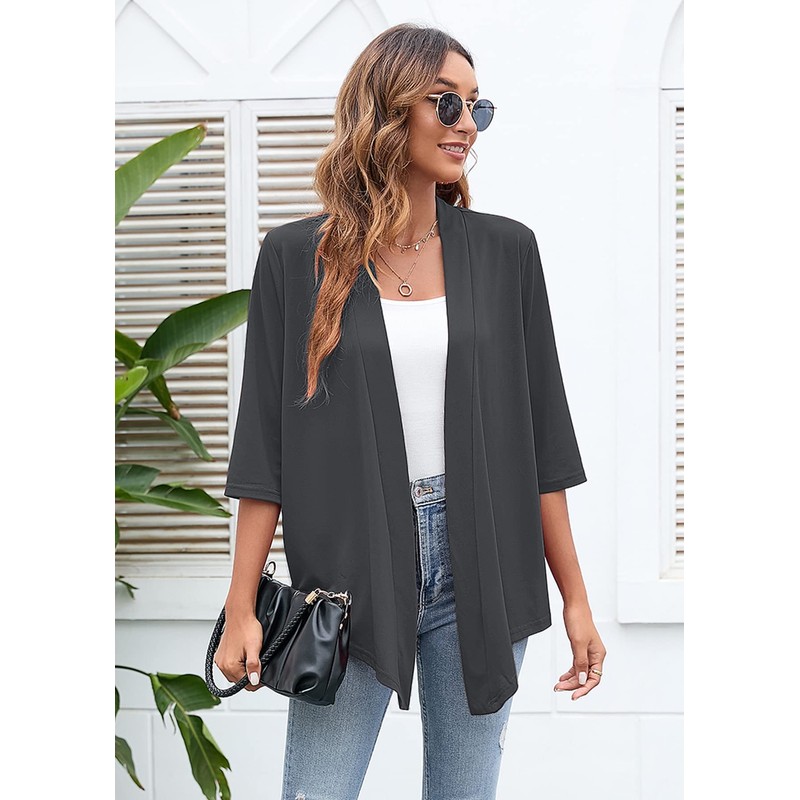 Heymoments Women's Cardigan Lightweight Draped Open Front 3/4 Sleeve Casual Flowy Cardigan Deep Grey Large