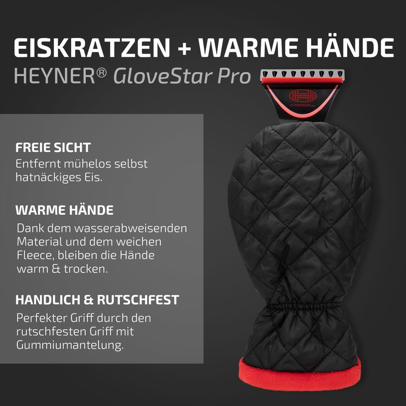 HEYNER® Eiskratzer Scheibenkratzer mit Handschuh Eisschaber Winterzubehör, schwarz