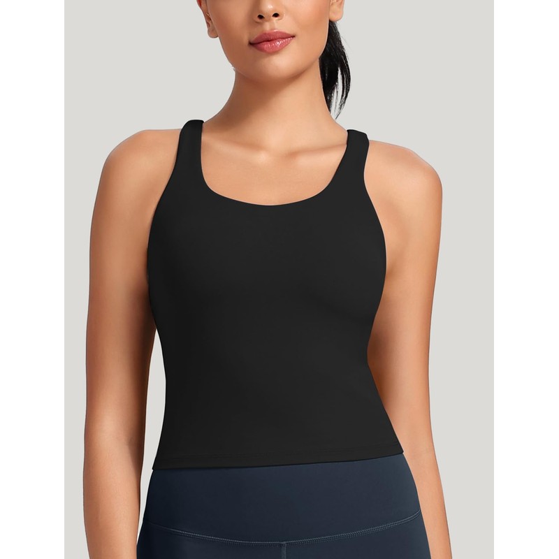 HeyNuts Athletic Zeal Bras for Women, Longline Medium Impact Crop Tank Bras Wirefree Sports Tops with Removable Pads Black L