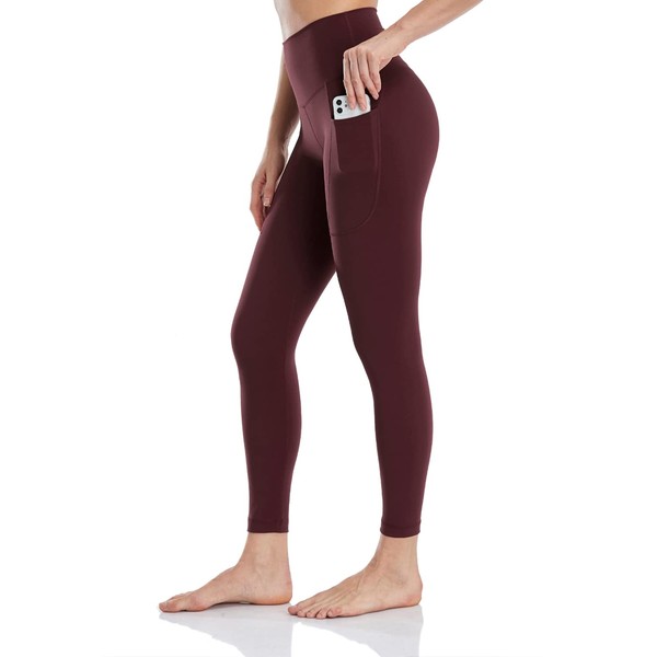 HeyNuts Leggings with Pockets for Women, High Waisted 7/8 Leggings Tummy Control Compression Workout Buttery Soft Pants 25'' Cassis M(8/10)