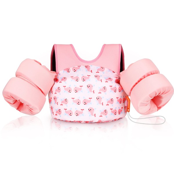HeySplash Kids Swim Vest, Toddler Swim Arm Sleeves Learn-to-Swim Water Wings Swim Arm band Floats with Shoulder Strap and Secure Buckle for 33-70 lbs, Pink Whale