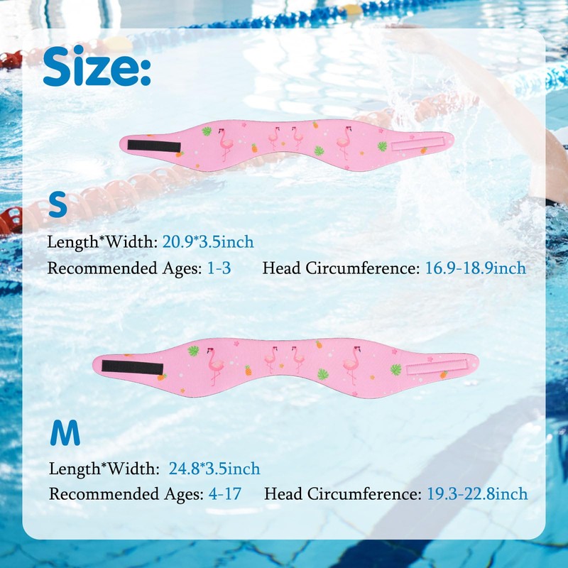 • Perfect for Kids: Small size is suitable for 1-3 years old kids. Head Size Range 16.9-18.9 inch/43-48 cm. With good elasticity and lightweight, soft and comfortable to wear. And lovely pattern makes more children love the swimming earplugs