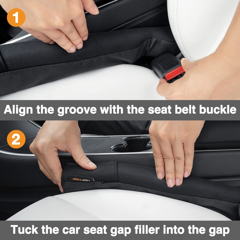 PREMIUM MATERIAL. HEYTRIP CAR SEAT GAP FILLER is made of high-class neoprene, soft and cozy, which cause no damage to car interior and also fits any gap between car seat and center console