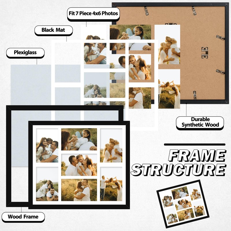- Ready to Hang: Equipped with sturdy hanging hardware, 7 picture frame collage 4x6 is ready to be mounted on your wall, allowing you to showcase your favorite pictures in a seamless and convenient manner.