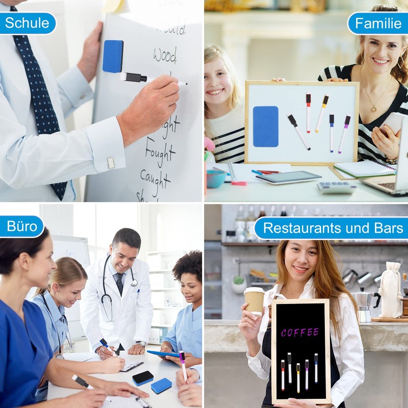 - Six colours: 10 black and 10 coloured different colours whiteboard pens wipe clean allow you to make different markings, highlight important content and arrange and plan your travel itinerary. With three independent whiteboard erasers, one set meets daily needs