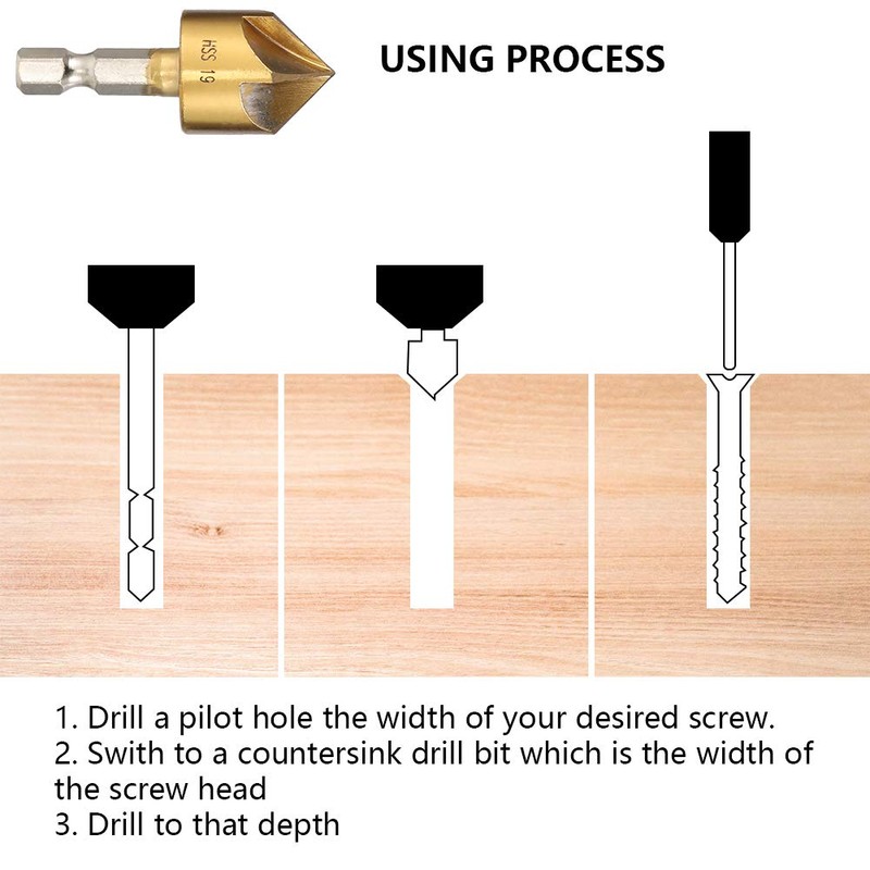 - PRECISE DESIGN - The drill bit is suitable for most power tools. With a 90 degree angle and precise countersunk holes, it is helpful for accurate drilling