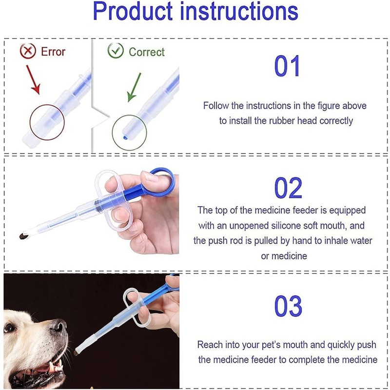 - Einfach zu bedienen:Dieser Tablettenspender ist sehr einfach zu bedienen, füllen Sie einfach die Tabletten, Pillen und flüssige Medizin, dann öffnen Sie das Maul des Haustieres und drücken Sie vorsichtig den Tablettenspender in das Maul des Haustieres.