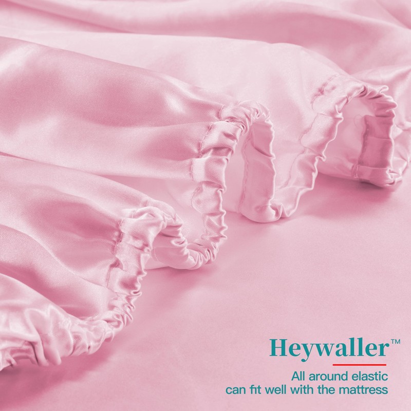 Heywaller 3 Pcs Satin Sheet Set Twin XL Size Bed Sheets, Pink Satin Sheets Silky & Luxury Bed Set, Soft Deep Pocket Sheets Cooling Bed Set, 1 Fitted Sheet, 1 Flat Sheet, 1 Pillowcase