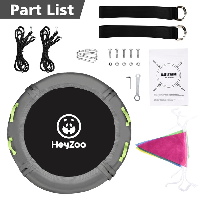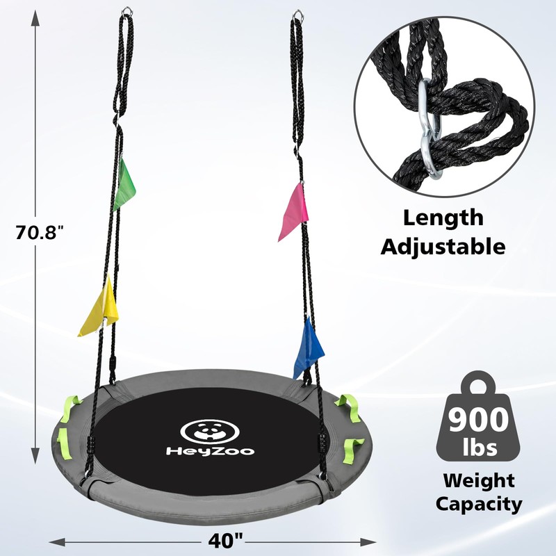 HeyZoo Tree Swing, Saucer Swing 40 Inch for Kids, 900lbs Weight Capacity, with Adjustable Hanging Straps, for Backyard and Outdoor Playground, Gray