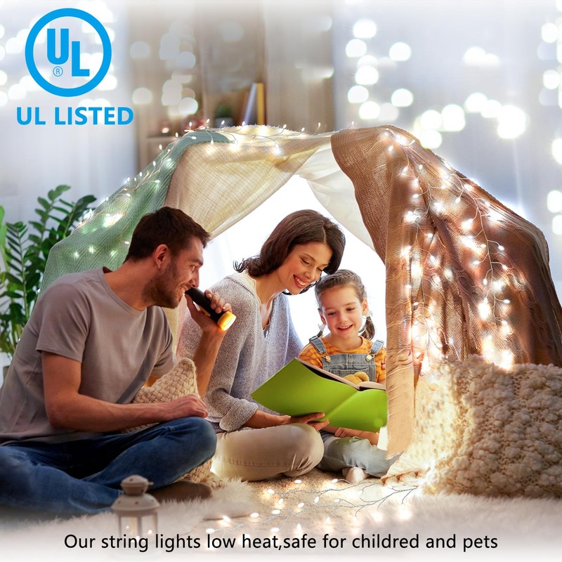 - Durability and Flexible: Our LED string lights are made with high-quality and flexible copper wire, can easily twining in railings tree and indoor carry on decor. Our lights for bedroom has passed the authoritative UL safe certification. Each string lights goes through a rigorous quality check process to ensure that you get the best.