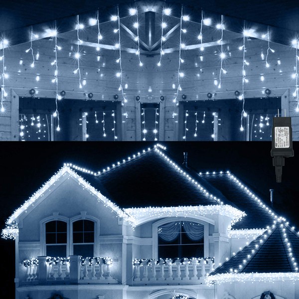 Hezbjiti LED Icicle Lights, 400 LED 32.8 FT 8 Modes 75 Drops Fairy String Lights Plug in Extendable Curtain Light String Christmas Lights for Bedroom Patio Yard Garden Wedding Party (Cold White)