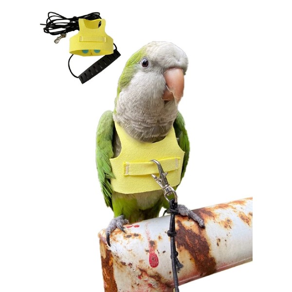 HEZHUO Bird Flight Harness Vest, Parrot Suit with Leash for Parakeets Cockatiels Conures Budgies, Flying Clothes Rope and Handle Outdoor Activities Training, Anti Bite (2M, Yellow)