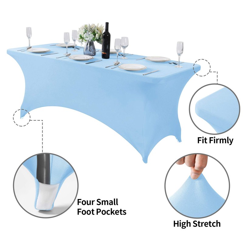 - Easy to use: Easy to set up with four-way stretch spandex material and four pockets for legs are designed for keeping the tablecloth securely in place to fit your table better.