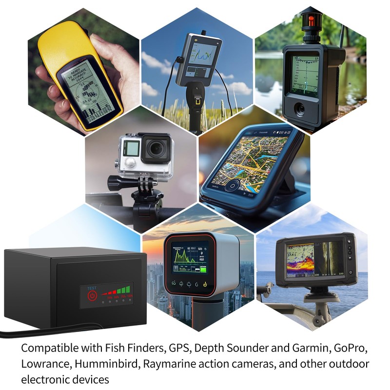 - RELIABLE BATTERY POWER KIT: The battery power kit is designed to provide stable energy for your 12V devices, compatible with Fish Finders, GPS, Depth Sounder and Garmin, GoPro, Lowrance, Humminbird, Raymarine action cameras, and other outdoor electronic devices