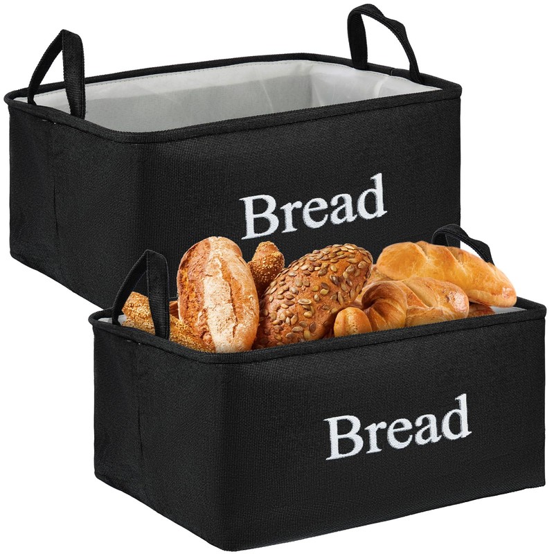 HFYZZ 2 Packs Bread Storage Bin for Pantry- Imitation Linen Breadbasket Large Capacity Bread Storage Containers Pantry Kitchen Counter to keep Bread, Rolls and Other Snacks Organized