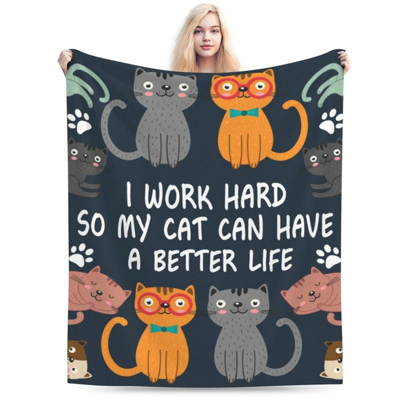 HGOD DESIGNS Funny Cat Throw Blanket with Inspirational Soft Blankets and Throws 100x130cm Caring for Women Men
