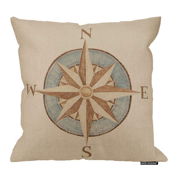 HGOD DESIGNS Nautical Compass Pillow Sofa Simple Home Decor Design Throw Pillow Case Decor Cushion Covers Square 18 X 18 Inches