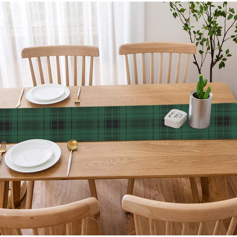 HGOD DESIGNS Tartan Table Runner,Green and Black Scottish Woven Tartan Plaid Pattern Cotton Linen Table Runner Home Decor for Kitchen Dinner Tea Table Cloth Placemat 14"X72"