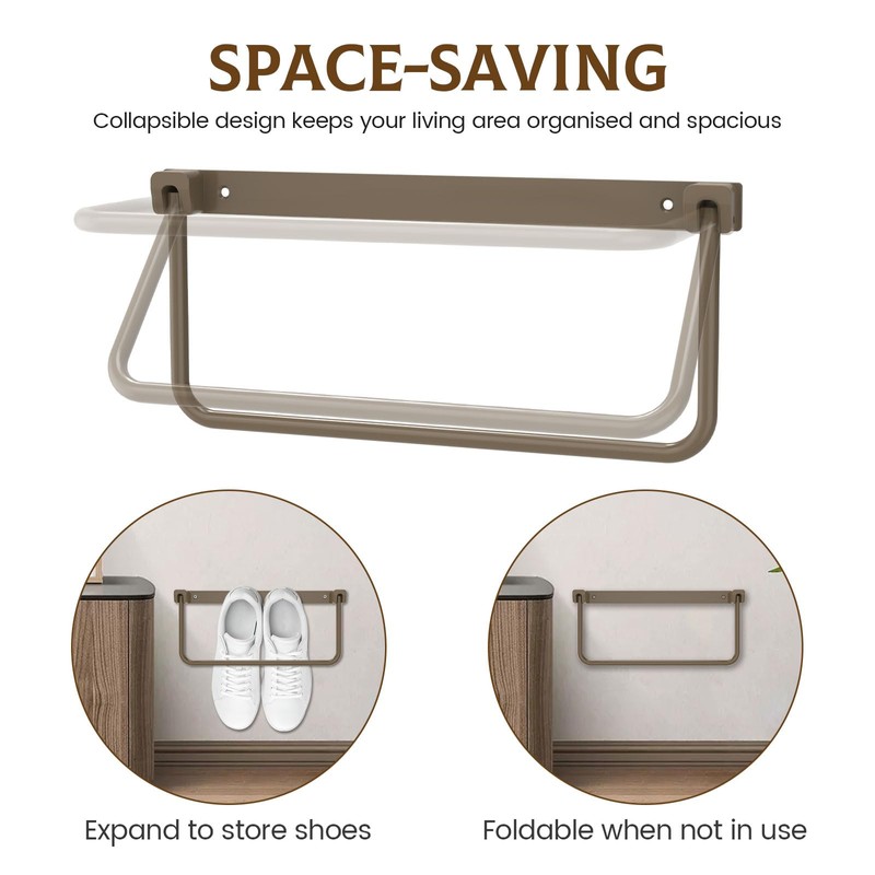 - [Saving-space RV Shoe Rack] The RV shoe storage features a foldable design that allows you to simply unfold them to store and organize your shoes and then fold them up against the wall when not in use. The foldable shoe rack maximizes unused space, keeps your RV and home tidy, and keeps life organized.