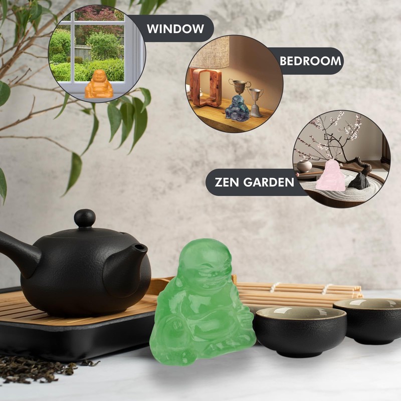 - [Crystal Buddha Decor]: The Buddha embodies profound wisdom and enlightened compassion, revered for his peaceful and harmonious qualities. This elegant spiritual decor serves as a meditation altar centerpiece in Zen spaces or a serene desktop accent. It also makes a meaningful addition to wellness-themed interiors, perfect for living spaces, bookshelves, and tranquil areas.